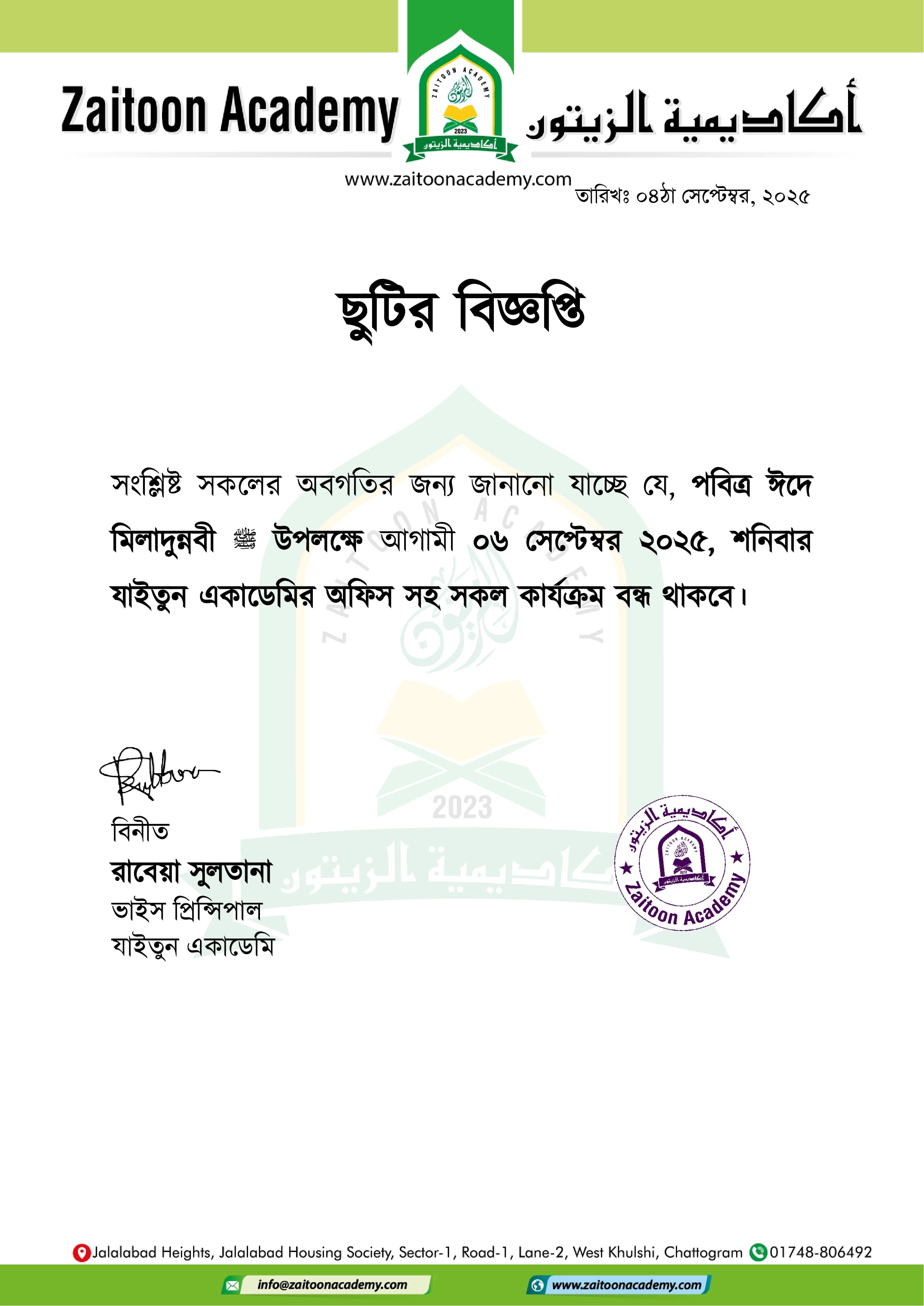 পবিত্র ঈদে মিলাদুন্নবী ﷺ উপলক্ষে ছুটির বিজ্ঞপ্তি | ০৬ সেপ্টেম্বর ২০২৫ Recent Notice Recruitment Written Exam Result for Session-2026 ২০২৬ সেশনে প্রমোশন সম্পর্কিত গুরুত্বপূর্ণ নির্দেশনা Invitation to Written Test – Recruitment 2026 English Language Camp - 2025 পবিত্র ঈদে মিলাদুন্নবী ﷺ উপলক্ষে ছুটির বিজ্ঞপ্তি | ০৬ সেপ্টেম্বর ২০২৫ টাইফয়েড (TCV) টিকাদান সংক্রান্ত নোটিশ ৩য় অভিভাবক-শিক্ষক সম্মেলন (PTM) ২০২৫ - এর সময়সূচী | ৩০ আগস্ট ২০২৫, শনিবার Mid-Term Exam Schedule | Autumn-2025 জুলাই গণঅভ্যুত্থান দিবস উপলক্ষে ছুটির বিজ্ঞপ্তি | ০৫ অগাস্ট, ২০২৫ Class Wise Fruit List | Fruit Festival 2025 Fruit Festival - 2025, Fruit List By Class Notice Regarding Qurban Dish Party Spring Final Examination Schedule - 2025 Notice Regarding PTM, Hajj Simulation, Final Exam & Eid Vacation Special Vacation Notice due to the heatwave | তীব্র তাপপ্রবাহের কারণে বিশেষ ছুটির বিজ্ঞপ্তি